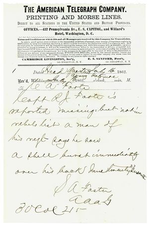 The telegram that informed Charles Foote that his brother had been killed.
