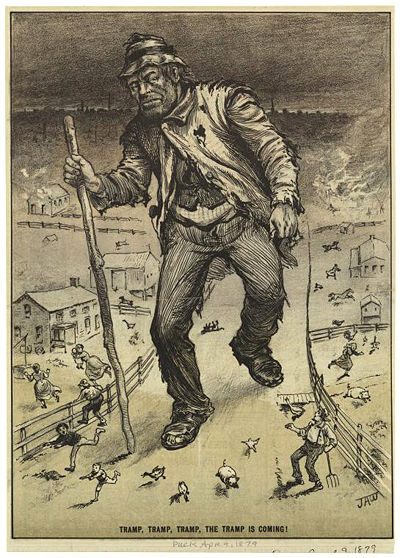 Revision as of 04:07, 27 April 2009 by Admin (talk | contribs) (New page: thumb|400px|The Tramp is Coming! From ''Punch'', 1879. Courtesy the New York Public Library, [http://www.nypl.org].)