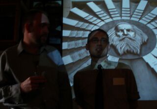 | current | 19:50, 7 July 2009 | 1,296 × 899 (611 KB) | MEM (talk | contribs) | David Fairbanks Ford introducing MEM to the lecture circuit for his talk on Alchemy, Tarot, and the Periodic Table of Elements |